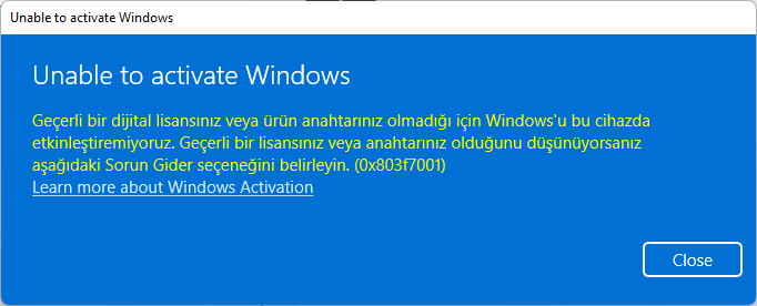 Aktif olmadı. Lisansım hesabıma bağlı olduğu hâlde aktif etmiyor. İşim gücüm yok şimdi Windows 10'u kurup tekrardan Windows 11'e geçiş yapacağım. 😡🤬