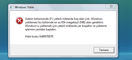 Windows Vista kurmak istedim fakat bu hatayı alıyorum. Sisteme Ayrıldı F diskini genişletmeyi denedim ama mavi ekran aldım.