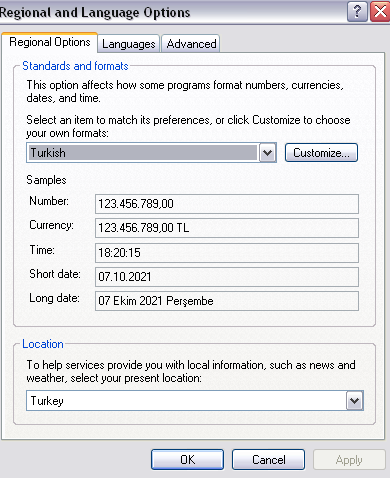 VirtualBox ile Windows XP kurdum XP İngilizce dilinde idi. Ben de ayarlardan Türkçe yaptım ama olmadı ayarlarda Türkçe gözüküyor ama hala İngilizce. Nasıl düzeltebilirim? XP 5 isimli fotoğrafta mavi ile işaretli yerde sadece turkish yazan yerleri işaretledim.