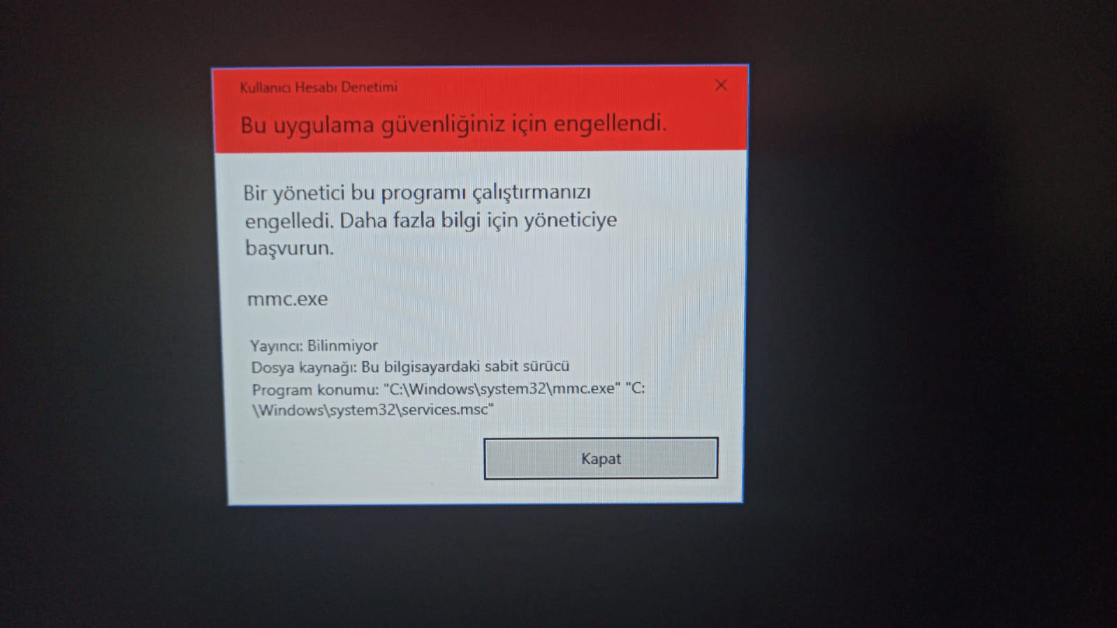 Bunları yaptıktan sonra ise Windows'a ait her şeyin yayıncısı tanınmıyor olarak gözüküyor. Bazı şeylere girerken soruyor (görev yöneticisi) bazılarına ise hiç sormadan direkt engelliyor (hizmetler). Ne yapmam lazım bu nasıl bir hata? Monster notebook servise getirin diyor ama yapacakları iş en kısa 1 hafta sürüyor, daha kolay bir çözümü yok mudur bunun?