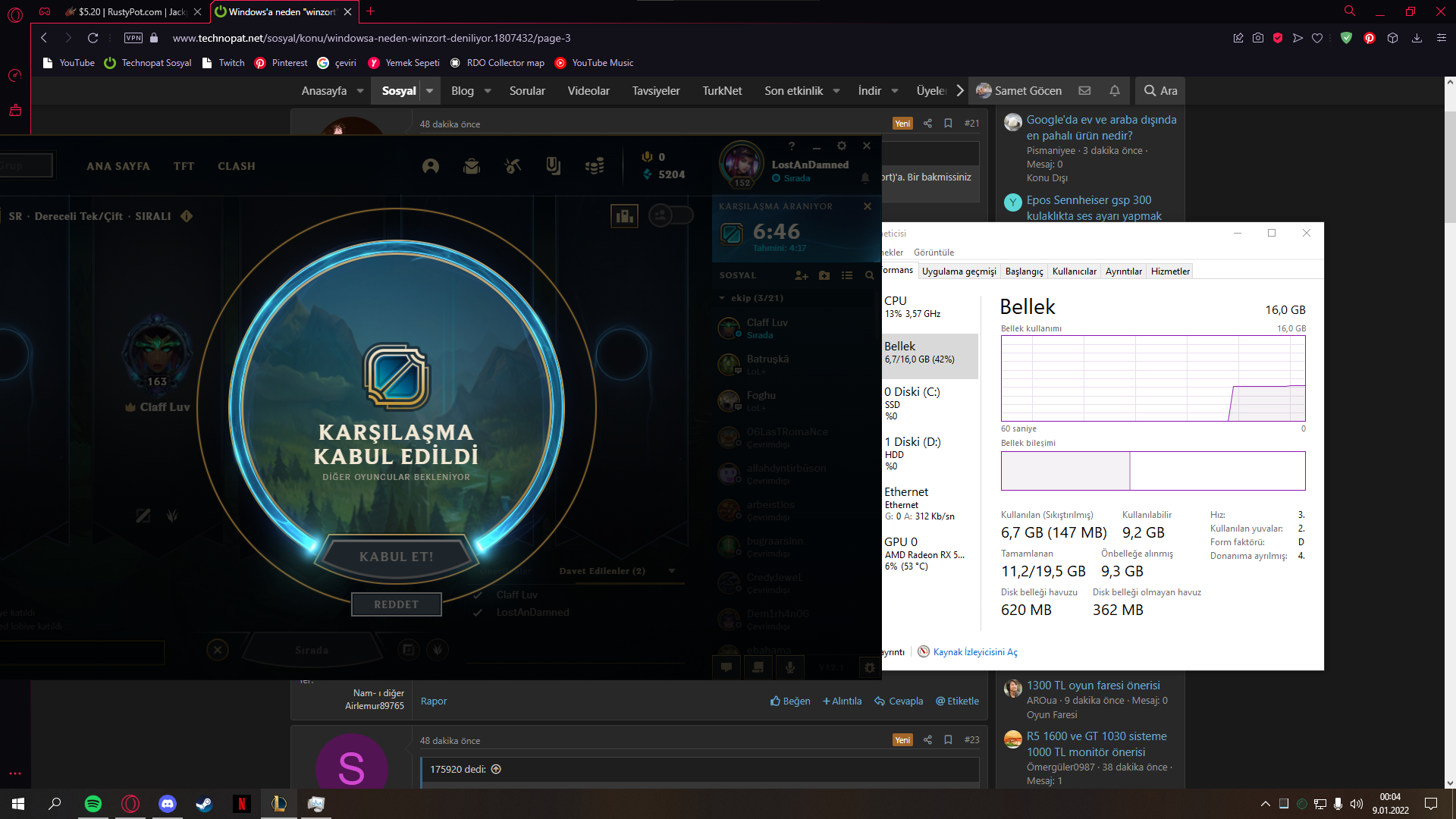 16 GB evet Windows 11 dede böyle hatta PC ilk açtığımda böyle 😂 bilgisayarım Linux acpı desteği olsa Linux dönerdim açıkçası.