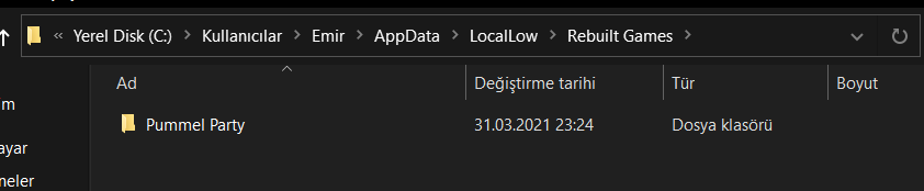 Belgeler kısmında oyun klasörü var ama onu sildiğimde düzelmemişti.