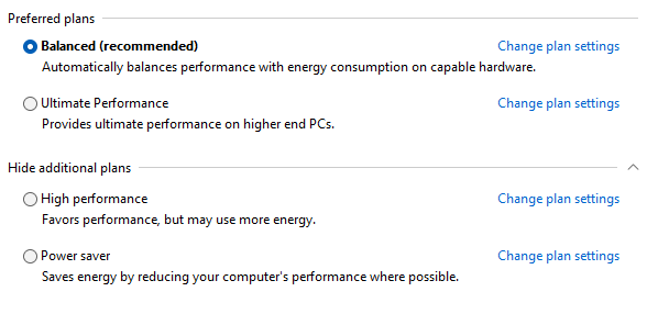 Oyun için Yüksek Performans veya Dengeliyi seçin. Nihai Performans seçeneği daha yüksek performans izlenimi verse de boş yere enerji tüketecek ama aşağı yukarı aynı performansı verecektir. Benim PUBG'de yaptığım 20-30 dakikalık testte Dengeli seçeneğiyle ortalama FPS 1-2 fazlaydı.