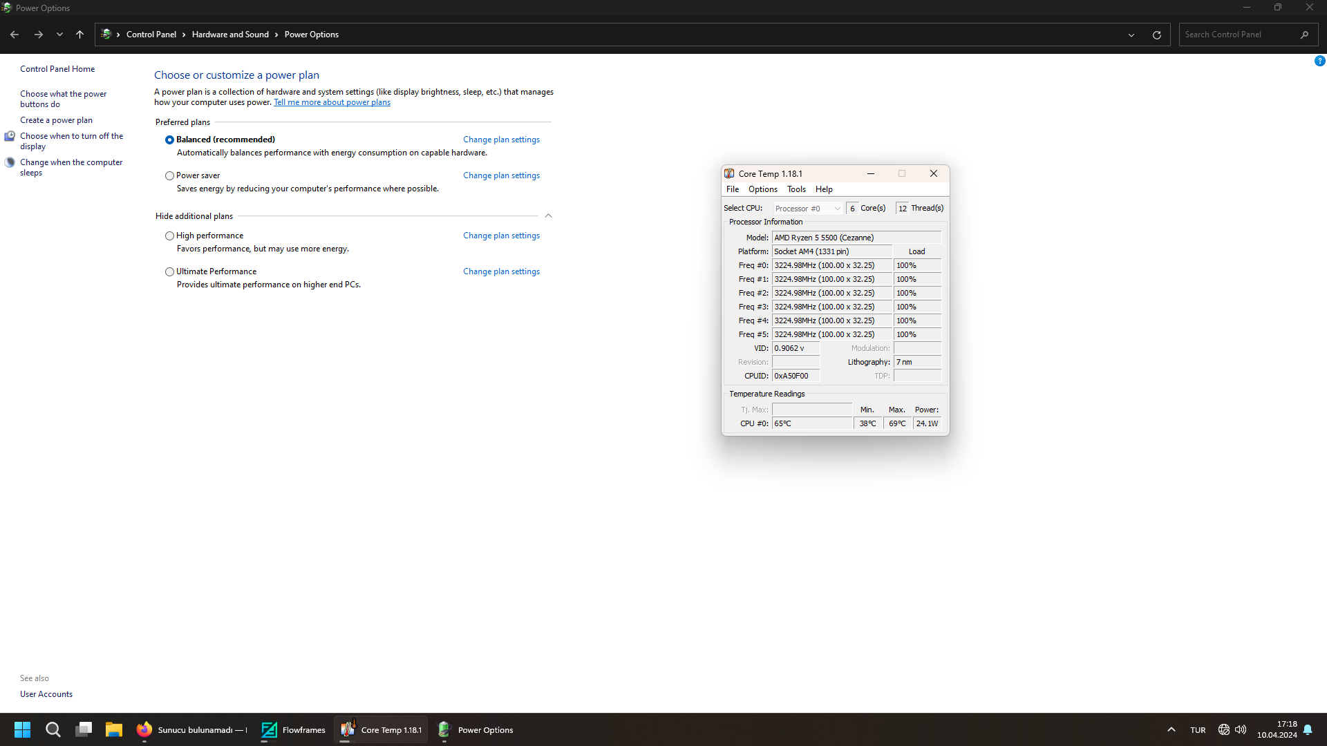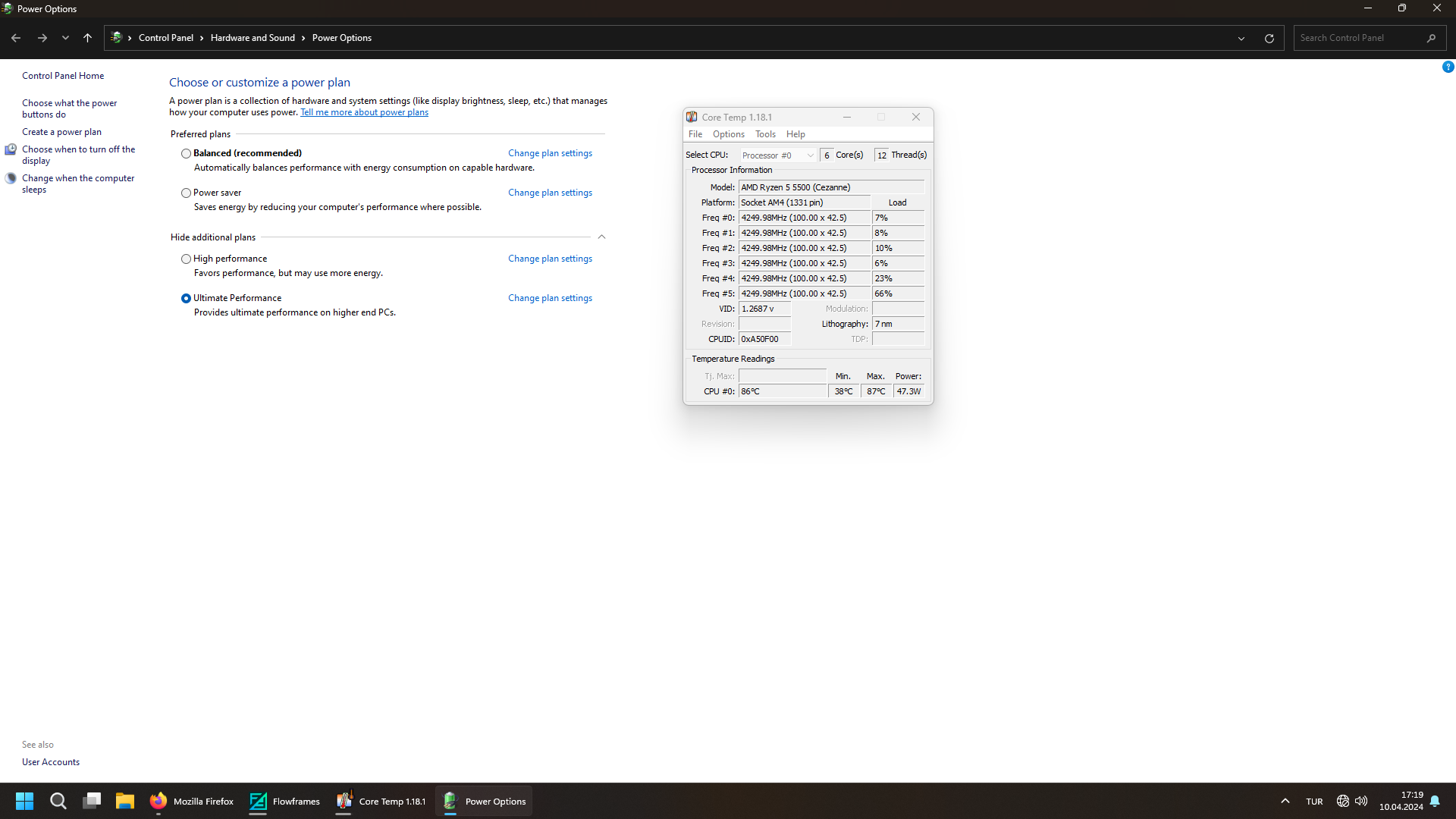 Güç gerektiren diğer alanlar için, mesela video render veya yapay zeka işlemleri, Nihai Performans ve Dengeli arasında dev farklar olabilir. Sıradan kullanımda Dengeliye, işlem yaparken soğutucunuz da iyiyse Nihai Performansa alabilirsiniz. İşlemcinin tüm çekirdeklerini kullanan bir işlemde durum şu şekilde;