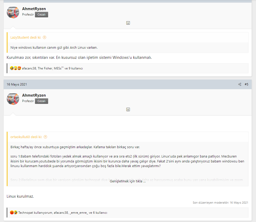 Arkadaşlar, malum kişinin önceki Linux yorumları. Benim fikrimce, Linux o kadar kötü değildir, ancak alışık olduğum için Windows kullanıyorum.