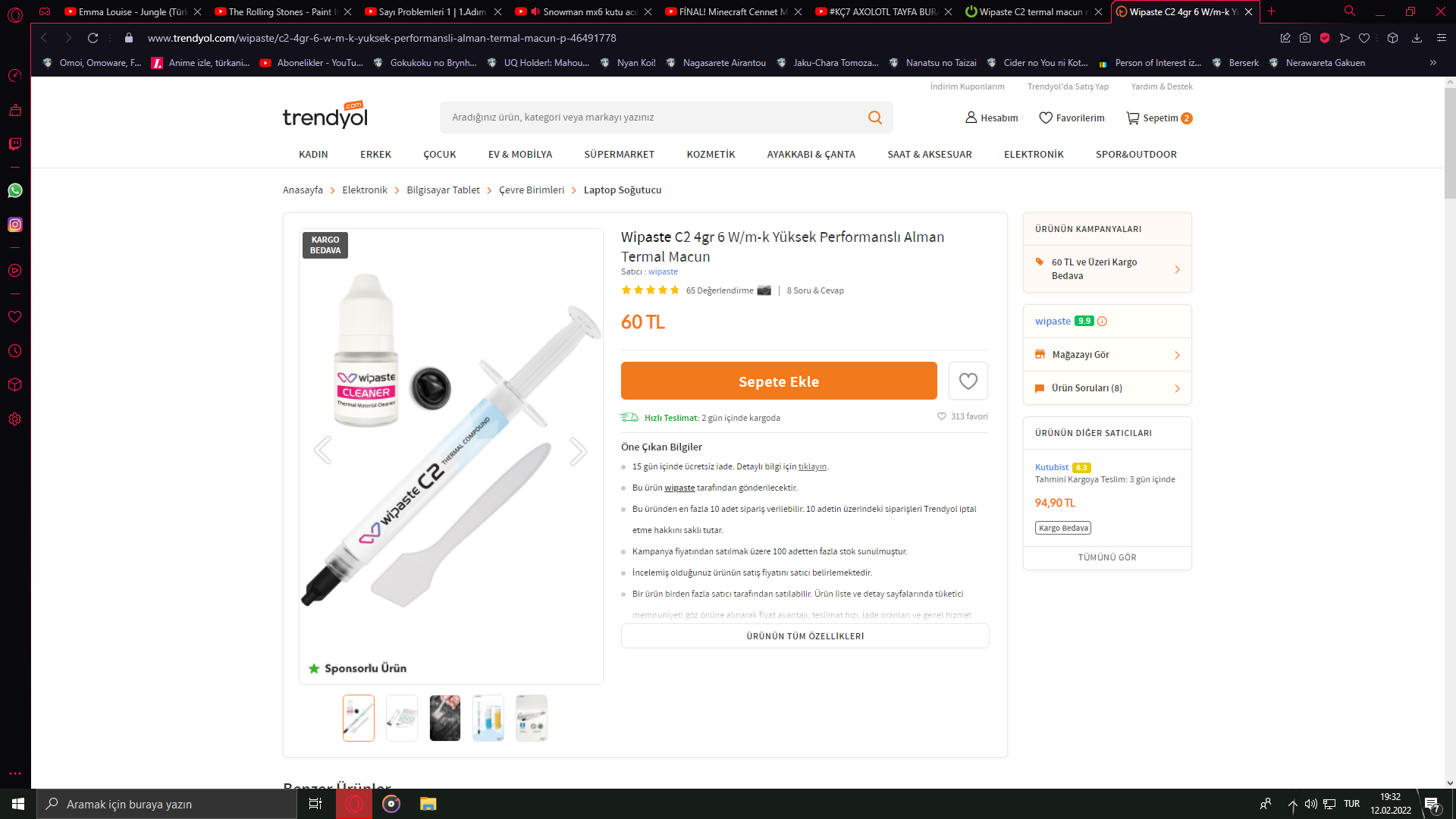 Wipaste C2 4gr 6 W/m-k Yüksek Performanslı Alman Termal Macun yorumlarını inceleyin, Trendyol'a özel indirimli fiyata satın alın.