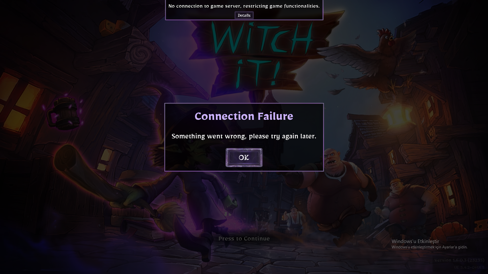 Witch It "Connection Failure" hatası veriyor