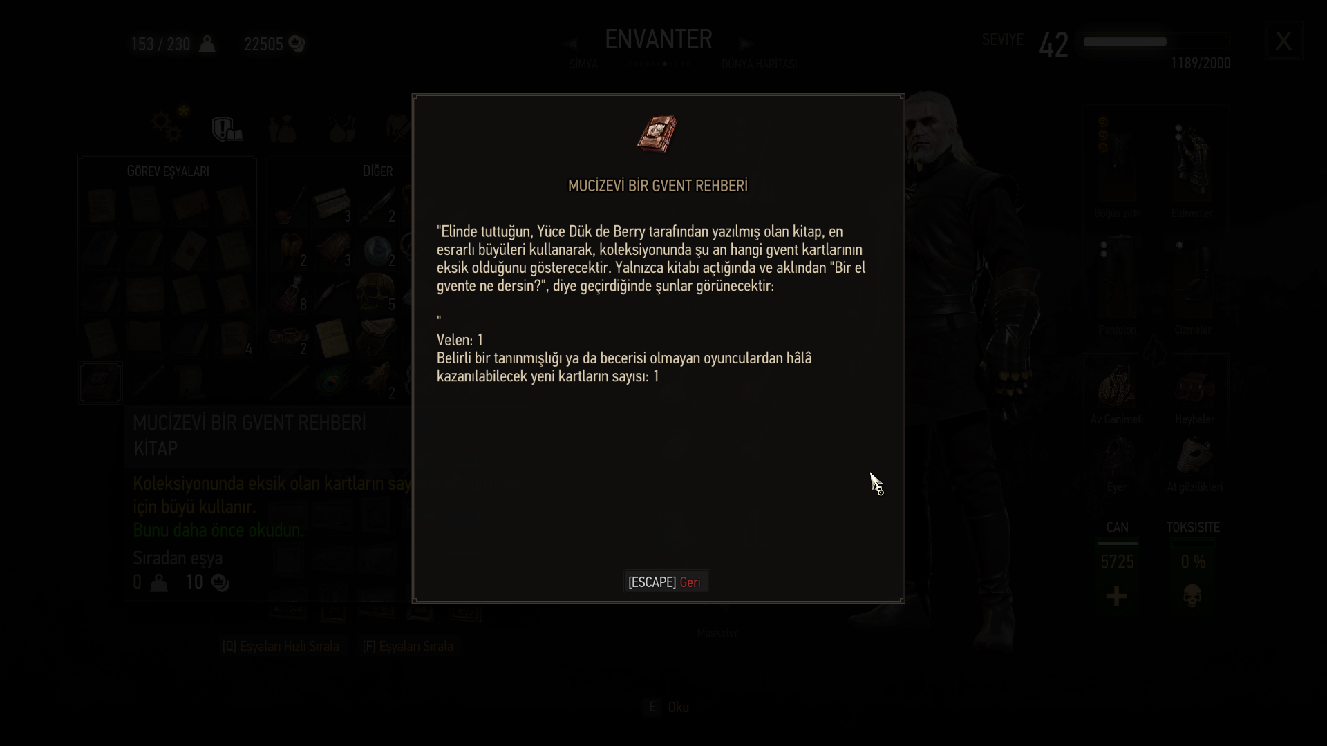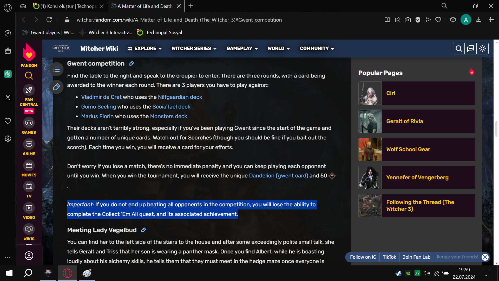 Witcher 3'teyken attığım görseldeki görevde 3. turu oynamayı unuttum. Bu yüzden Dandelion'u alamadım eşsiz kart olduğu için Gwent destesi tamamlanmamış olarak gözüküyor. (Gwent: Hepsini topla) görevi de başarısız oldu. (oyunu bitirdikten sonra fark ettim