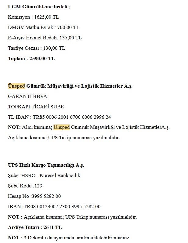 Gümrük işleri gerçekten kafa ağrıtıcı ve dolandırıcı. Üç tane wooting 60he toplam 501€ (50€ kargo) UPS ile almıştım ve 18% gümrük sanıyordum ama Türkiye'ye gelince UPS bana link gönderip vekaletname istemişti, ben vekaletnameye 600 TL vermek istemediğim için iade işlemi başlatmıştım. İade işlemi $200 + navlun ücreti olduğunu berlirtiller ve bu işlem 3 hafta sürdü müşteri temsilcileri birkaç kere aradığma rağmen, 3 hafta sonra bir ünsped gümrük müşaviri ve UPS tarafından mail geldi. O mail içinde: