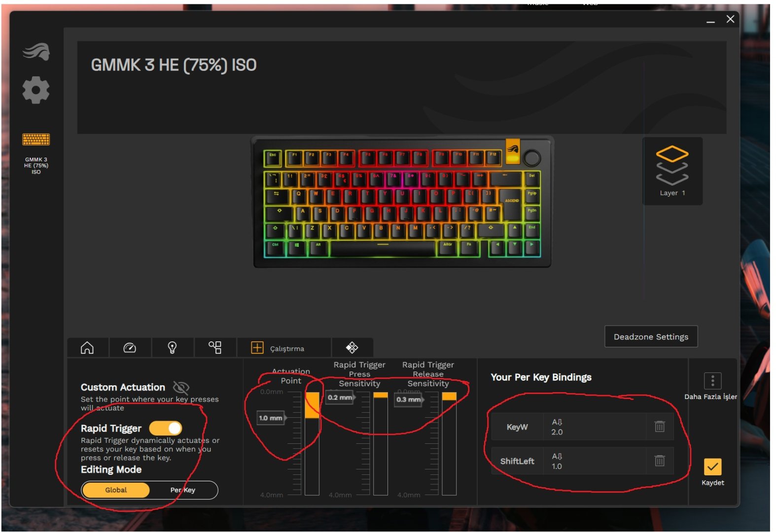 Sizin klavyeyi aldıktan sonra yaptığınız ayarlar neydi şunu bunu kesin yap diyebileceğiniz bir ayar var mı?