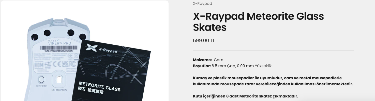 Merhabalar, Xraypad markasının meteorite model cam skatesini aldım. Elimde Wraith Blade Y ve ESPTiger Pioneer Series Talismans Yasheng V2 model iki farklı mousepad mevcut. Beast X Pro mouse'uma bu aldığım cam skatesi takarsam mousepadlerime zarar verir mi? Bazıları vermez, bazıları verir diyor. Anlamadığım şey cam skates ESPTiger Pioneer Series Talismans Yasheng V2'e zarar verir mi? Cam skates kumaş bir pad üzerinde olacak sonuçta. Cam skates oldukça kaygansa mousepad yüzeyine zarar vermemesi gerekmez mi?