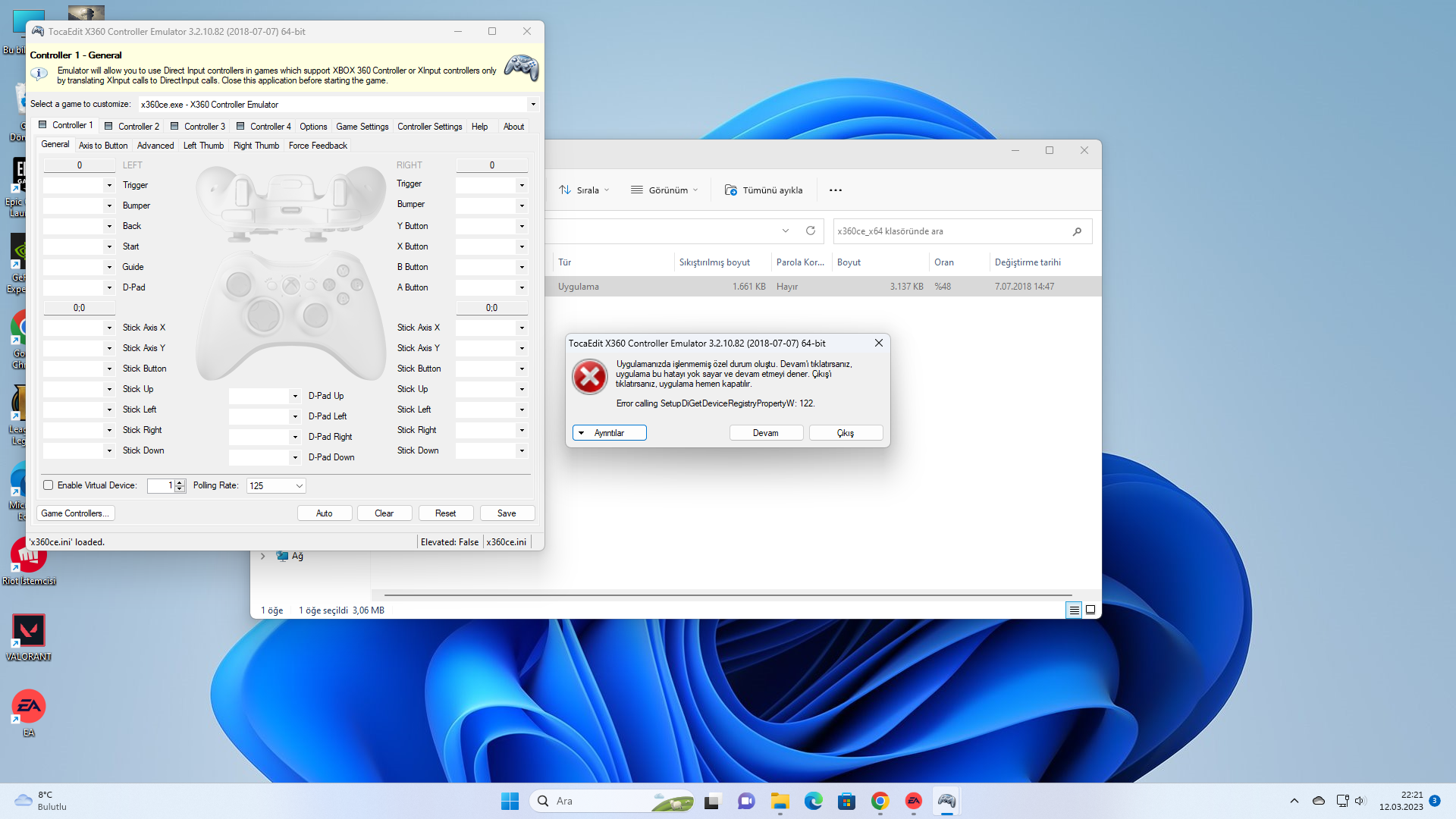 İyi akşamlar A Way Out oyununu aynı PC'den iki kişi oynayacağız elimde gamepad olarak Snopy marka var X360CE üzerinden yapmaya çalışıyorum ama görseldeki hatayı alıyorum. Devam deyince de gamepadi görmüyor bunun çözümü veya gamepadi bu oyunda tanıtmanın başka bir yolu var mı? Şimdiden teşekkürler.