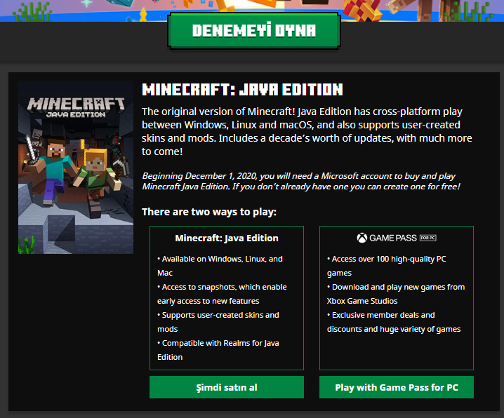 Game Pass 3 aylık kullanıyorum minecraft satın al demesi.