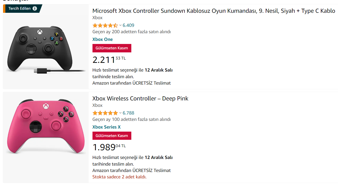 Arkadaşlar PC için kol alacağım fakat gamepadler hakkında bilgim olmadığı için bu ikisi arasındaki farkı anlamadım, Deep pink olana 700 TL ithalat ücreti ekleniyor ve daha pahalı oluyor. Hangisini almam gerekli, ne gibi fark var aralarında?