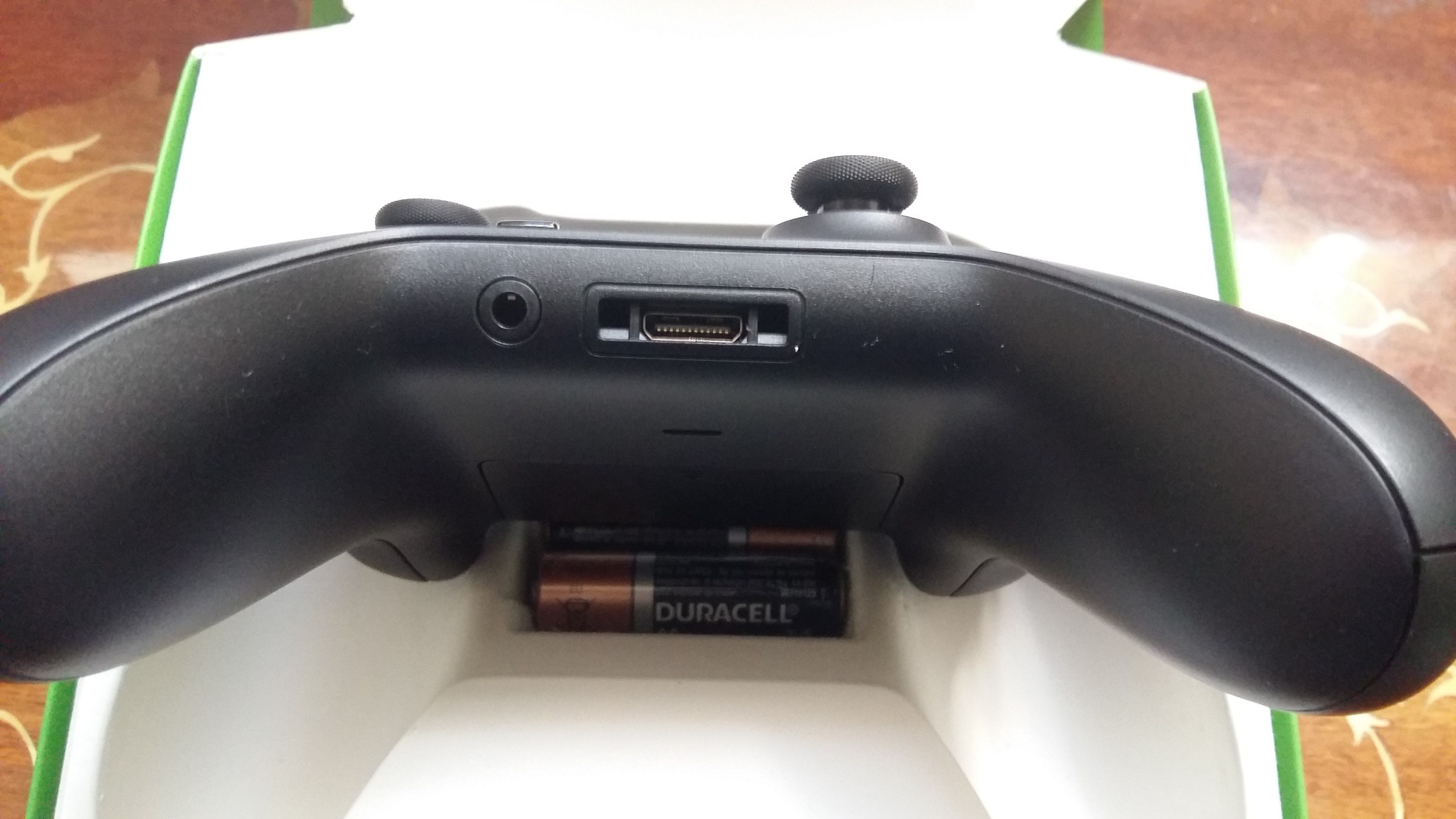 Kumandanın ön yüzü ve Wireless alıcısı olmadan kullanacaklar için PC ile bağlantıyı sağlayacak olan mini USB yuvası mevcut. Yanında da dikkat ettiyseniz siyah bir tuş var bu tuşta Xbox One konsolu ile senkronize etmenizi sağlıyor. Yuvayı USB'den OTG'ye dönüştürülmüş kablo ile kullanabilirsiniz. Bende mevcuttu fakat kumanda ile uyumlu olmadığı için Samsung şarj adaptörünün yanında verilen USB kablosunu bağladım çalıştı.