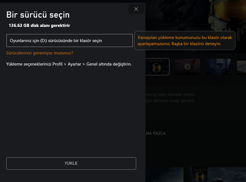 Ben de gidip D seçtim fakat hep "varsayılan yükleme konumunuzu bu klasör olarak ayarlayamazsınız. Başka bir klasör deneyin." diyor hep tüm klasörleri denesem olmuyor. C disk deseniz C diskinde yer yok ve oradan oyunlarımı yükleyemiyorum. Ben genellikle oyunlarımı D'den indiriyorum nasıl D diskine geçeceğim?