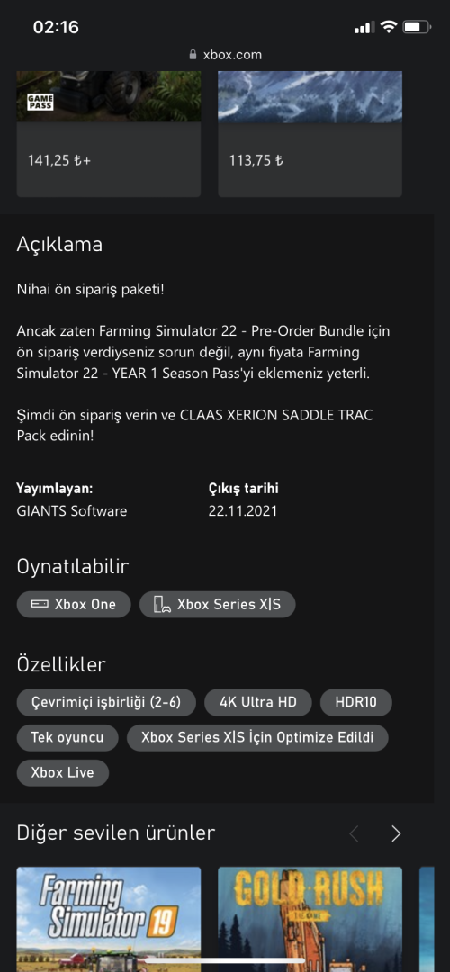 Xbox üzerinden Farming Simulator 2022 alınır mı?