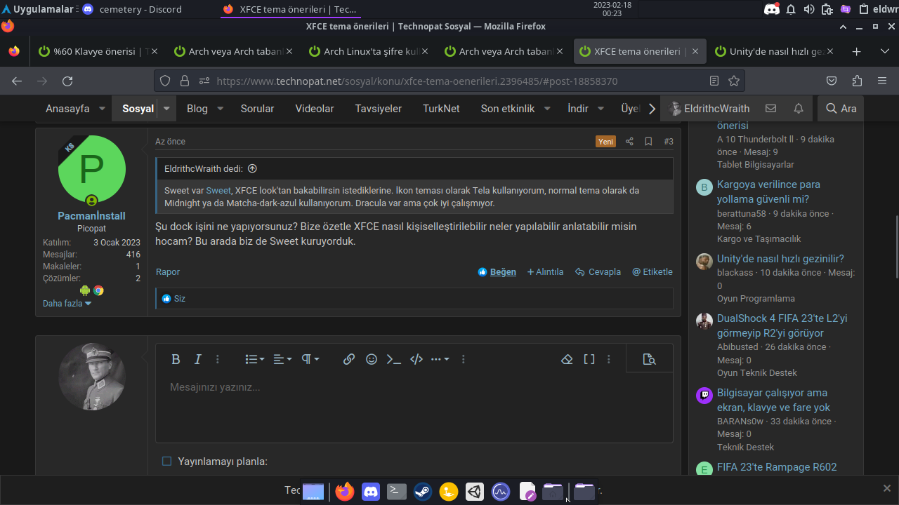 Sonunda XFCE deneyeceğim tekrardan uzun süreden sonra. Güzel XFCE temaslarını nereden bulabilir, haberdar olabiliriz? Tema önerilerinize açığız. Şimdiden herkese teşekkürler. @EldrithcWraith özellikle senden bekliyorum :)