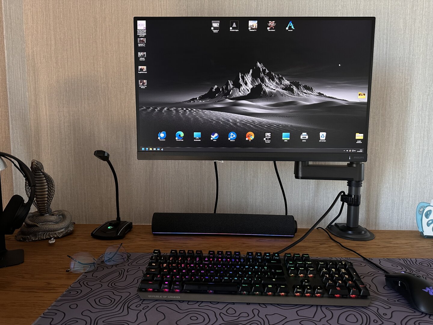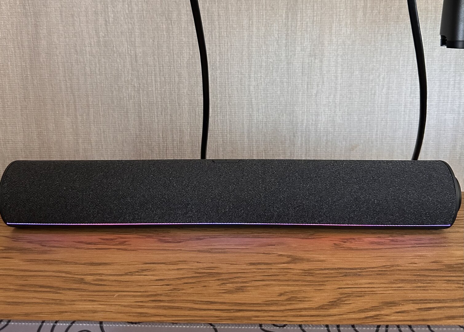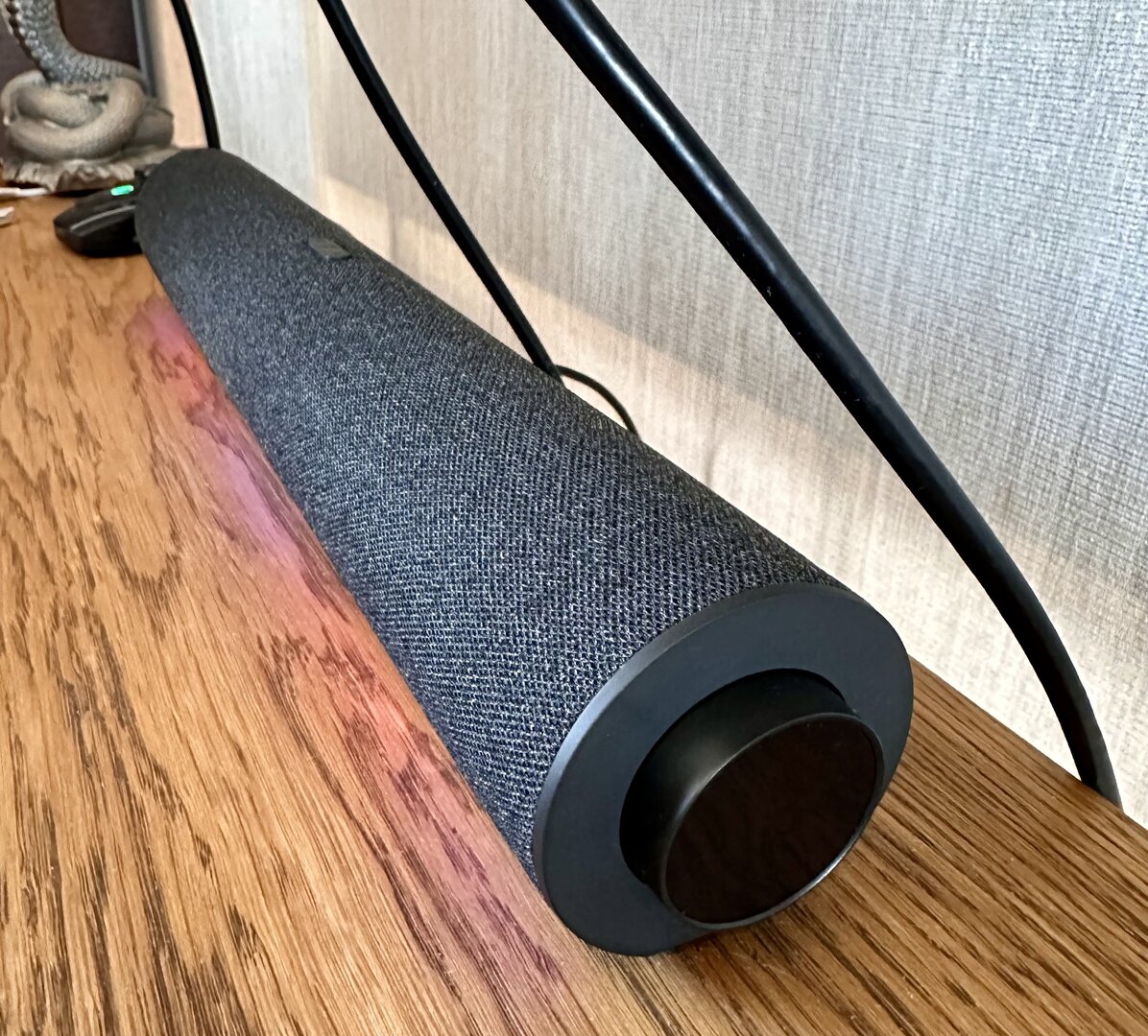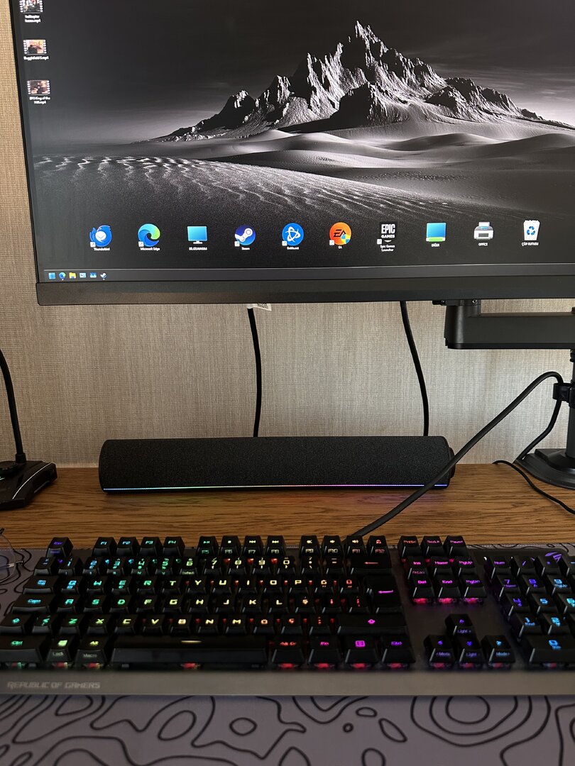 Hoparlörün uzunluğu yaklaşık 44 cm. Monitör standı kullandığım için hoparlörü monitörün tam altına, klavyenin karşısına konumlandırdım.