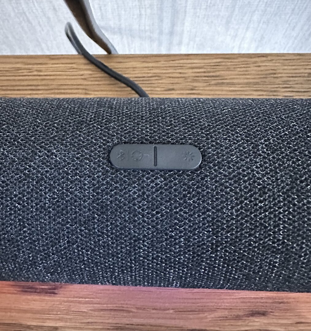 - Aşağıdaki fotoğrafta gördüğünüz, hoparlörün sağında bulunan çok amaçlı düğme ile sesi kolaylıkla arttırıp azaltabiliyorsunuz ve sonsuz döngüye sahip, kademesiz. Ek olarak hoparlörü açma kapatma gibi hareketleri de buradan yapıyorsunuz.
