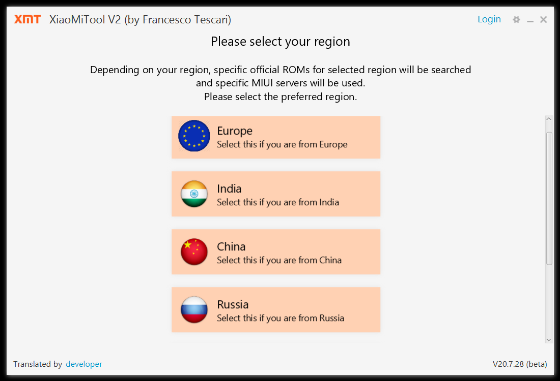 Uygulamayı indirince karşınıza indirmek istediğiniz ROM dosyası için bölge seçme menüsü açılacak.