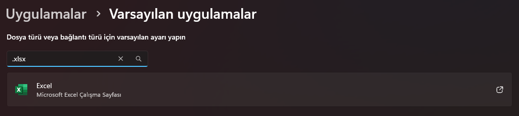 Microsoft Exceluygulamasını seçin ve onaylayın.- Ayar seçilmiş olacak. Sırasıyla