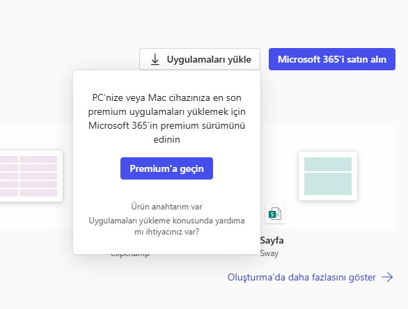 Bilgisayarınızda Office 365 yüklü değil. Microsoft'un web tarayıcı uygulaması olan Office.com uygulaması yüklü.Bilgisayarda Office 365 yüklü ve tarayıcı üzerinden çalışıyor.