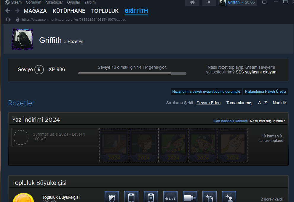Topluluk Büyükelçisi rozeti var altta gözüken. 2 görevi tamamlarsan yükselirsin.