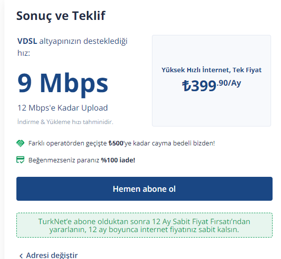 Bu arada o hız için verdiğiniz fiyat çok. Millenicom bu açıdan en azından iyi. Bence direkt geçiş işlemlerini yapın. Uzun zamandır zaten kargo üzerinden evrak işlem devri bitti. Farklı daha ucuz olan firmalarda var, ama internet kararlılığı ve müşteri memnuniyeti açısından Millenicom iyidir. 400 TL TurkNet için bu hıza göre fazla.