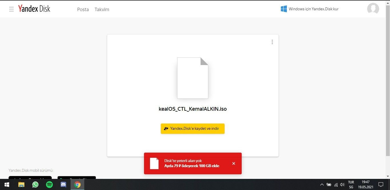 Önceden ISO'yu kaydetmişsiniz sanırım Yandex Disk'e bir bakın ISO orada mı diye.