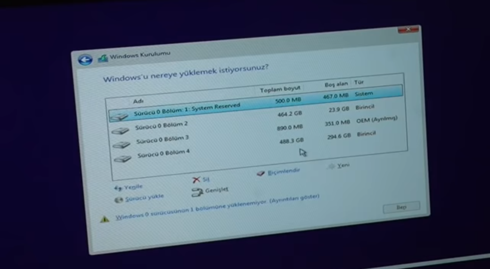Temiz kurulum yapmanız gerekiyor, Windows silinmiş.