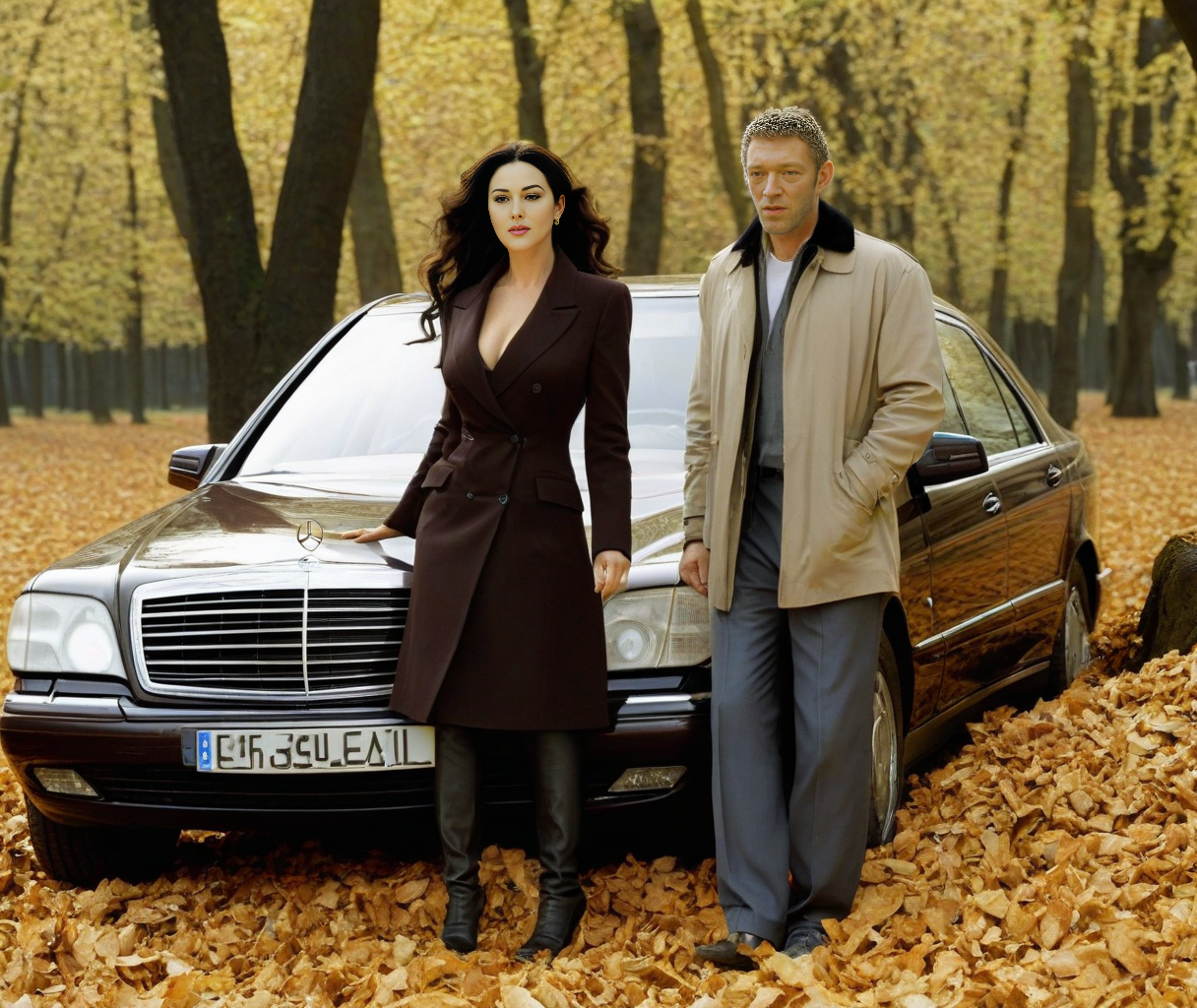 Gerçekçi + Monica Bellucci + Vincent Cassel + Mercedes S Classs W140 + Paris Sonbahar Yaprak Dökümü.