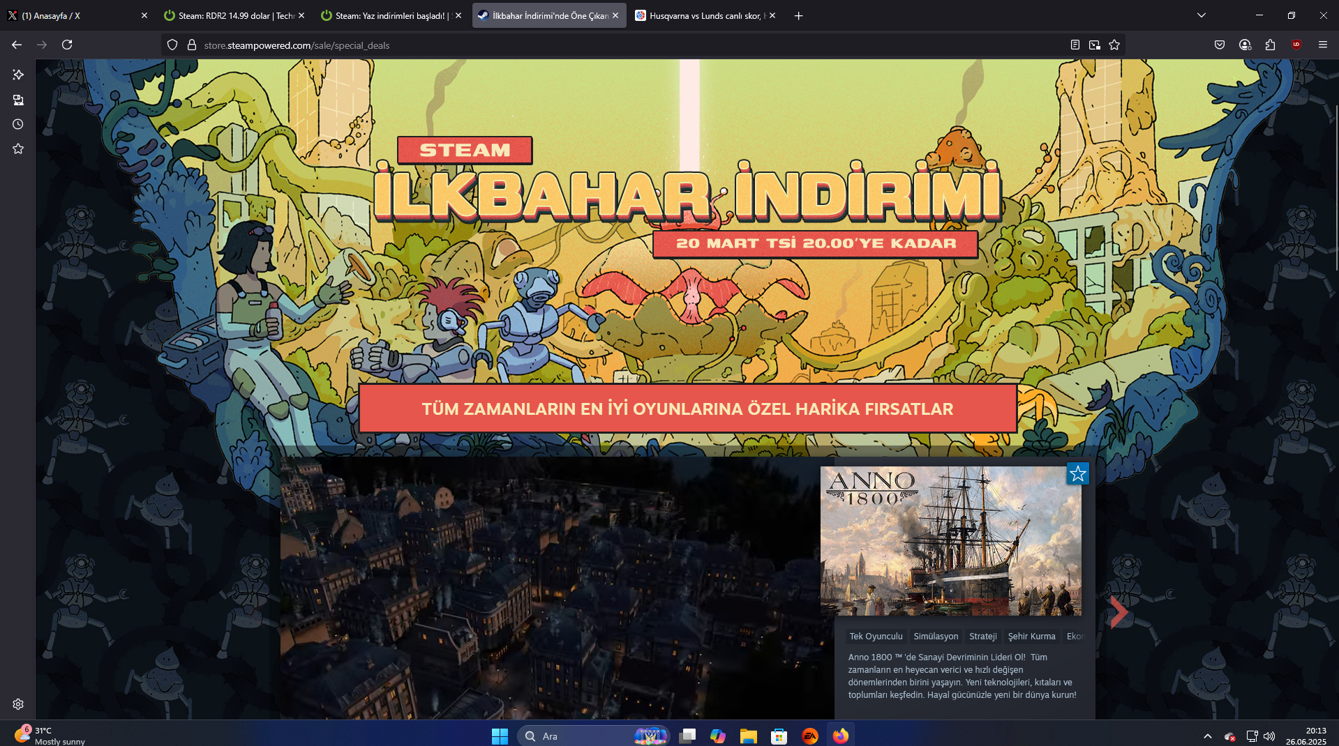 Steam'de her zaman ki gibi yoğunluk var. Yaz indirimleri hiç tatmin etmedi. American Truck Simulator $1.00 dolar iken almayarak büyük hata etmişim.