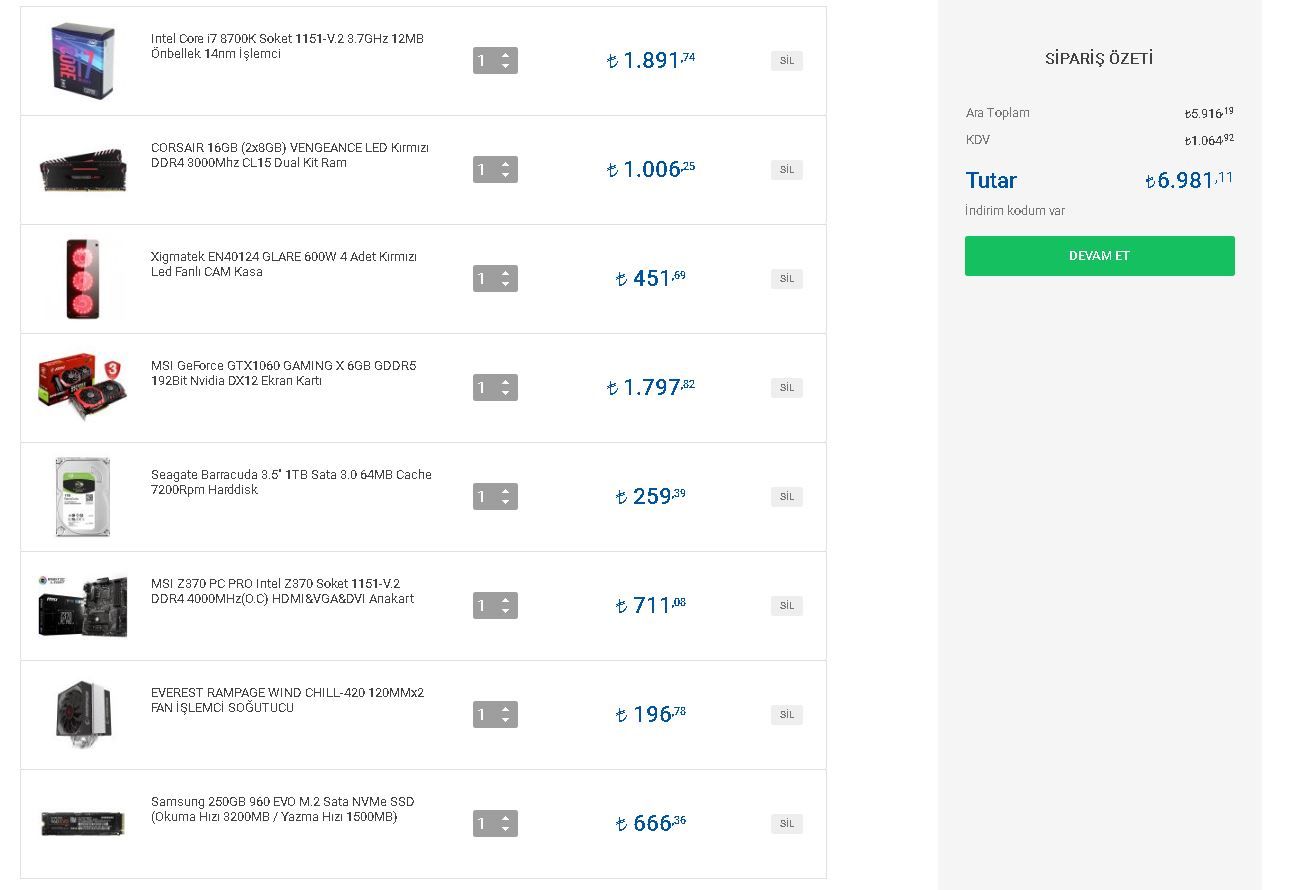 Yazılım için i7 8700K ve GTX 1060 sistem toplama