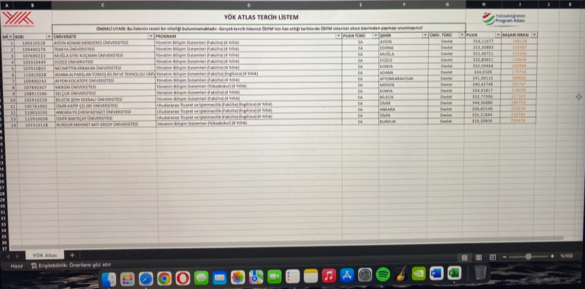 Merhaba @ismailkrmk. Eşit Ağırlık 197.000 sıralama ile Kapadokya Üniversitesi tam burslu Yönetim Bilişim Sistemleri, Osmaniye Korkut Ata Üniversitesi Yönetim Bilişim Sistemleri, ve Bursa Teknik Üniversitesi Uluslararası Ticaret ve Lojistik gibi alternatifler gelebilirmiş. Tercih yaptınız mı?
