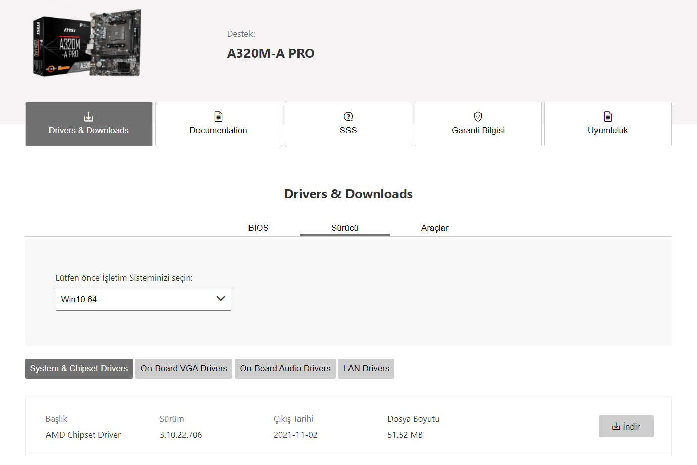 Not: Anakartınız A320 Pro ve MSI değilse belirtebilirsiniz de işlemi anladıysanız kendiniz uygulayabilirsiniz de.