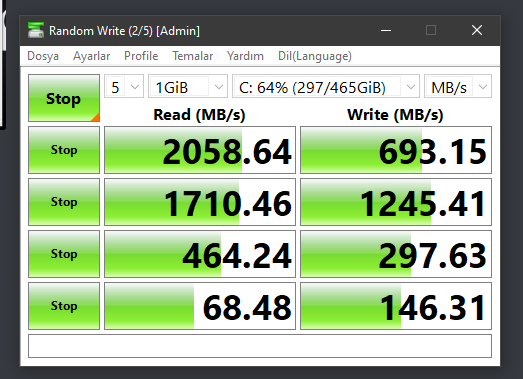 O esnada disk okuma yazma hızım: (Diskimin vaadettiği 2000/2000)
