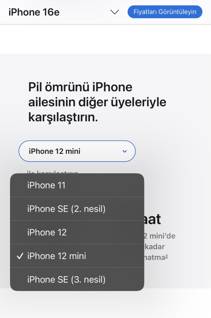 16 ile kıyas seçeneği yok ki. Sadece bu modelleri koymuşlar. O daha komik.iPhone 16'dan daha fazla ekran süresi veriyor. O 22 iken bu 26 yazıyor.