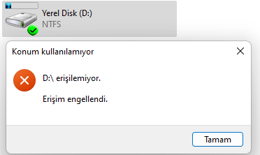 Yerek disk D'ye erişemiyorum. Sebebi ne olabilir?