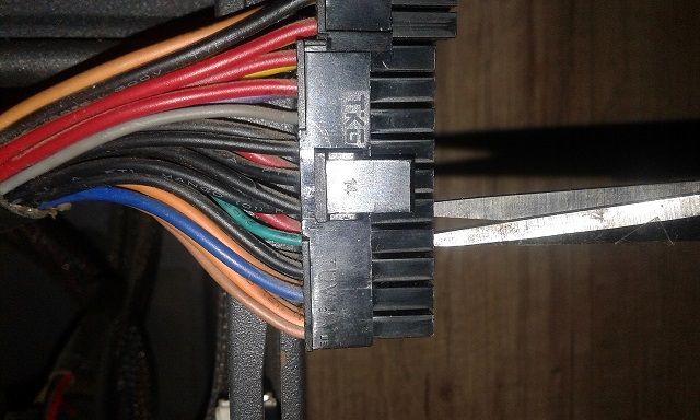 Kompenentlere mukavemet vermesi için olduğunu düşündüğüm bir madde o. 20+4 pine aşağıdaki gibi kısa devre yaptırdığınızda PSU çalışıyor mu kontrol edin. Ben 4 ve 5 nci pinleri temas ettirmişim fakat siz 3 ve 4'ü ettirin. 2 ucu çıplak kabloda kullanabilirsiniz.