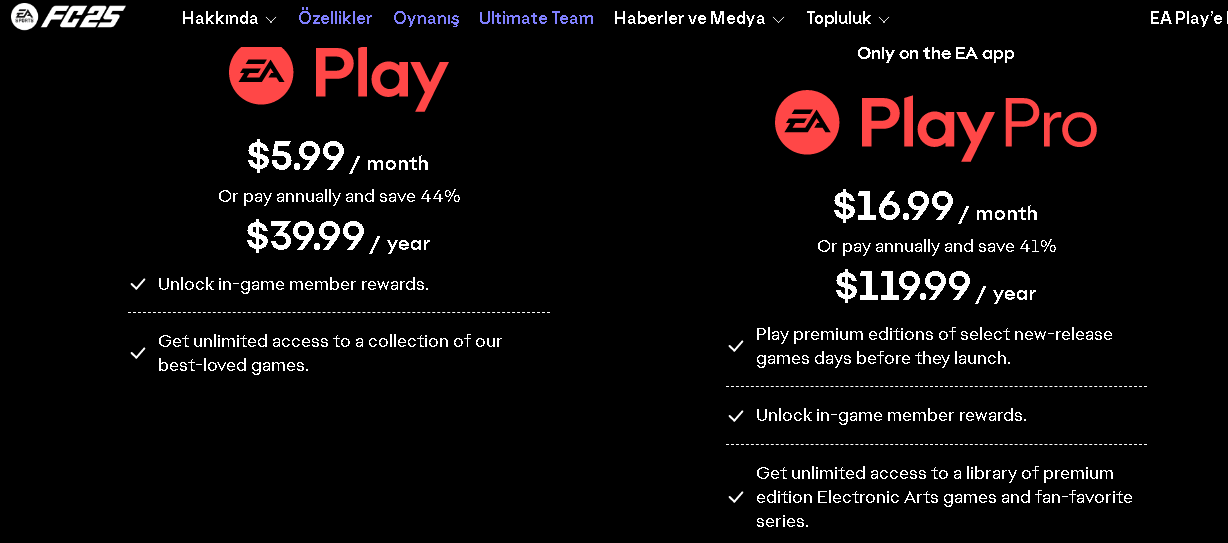Kendi sitesinde EA Play Pro yazıyorsa o produr hocam bilmiyorum EA mi dolarda yoksa ben yanlış yere mi girdim ama kendi sitesinde dolar bazlı var aşağıdada sitesi mevcut eğer ki dolar bazlıysa EA Play Pro'da 1 sene boyunca sınırsız oynarsın.