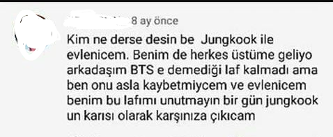 "Dün BTS'ci kızlarla sınıfta iyi kavga ettik. Herkes Black Pink'in en iyisi olduğunu bilecek." tarzında bir video izlemiştim. Sürekli olarak böyle karşıma çıkıyorlar. Bunlar muhtemelen 10-15 yaş arası bulunan çocuklar. Gına geldi artık bunların saçma videolarını izlemekten.