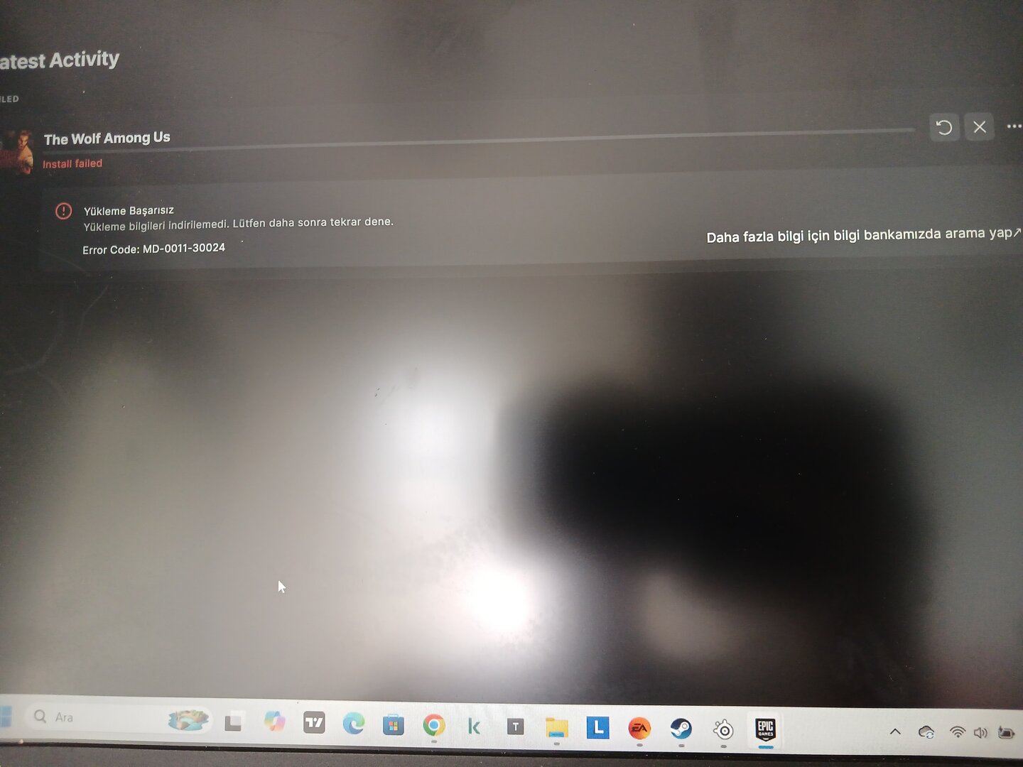 Herkese iyi sosyaller, Epic üzerinden The Wolf Among Us indirecektim ancak böyle bir hata alıp duruyorum. Çözümünü bilen var mı?