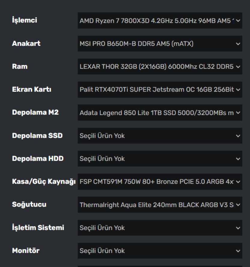 AMD R7 7800x3D işlemcisini baz alarak yüksek performanslı bir sistem toplamak istiyorum. Ayrıca bilgisayar aldığım zaman bu konuda minimum 5-6 yıl arkama bakmak istemiyorum.