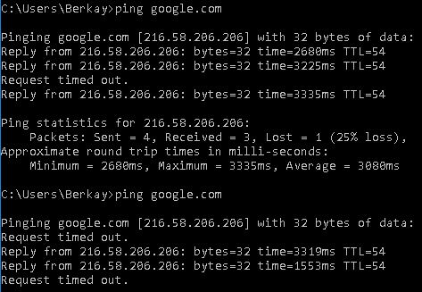 Merhabalar uzun süredir böyle bir dertten muzdaribim. Ne zaman modemime bir telefon bağlansa 3bin ve üzerinde pingim çıkıyor. Airties desteğe başvurdum ama ne yazık ki sorunun onlardan veya cihazlarından kaynaklanmadığını söylediler. En son çare olarak buraya yazıyorum.