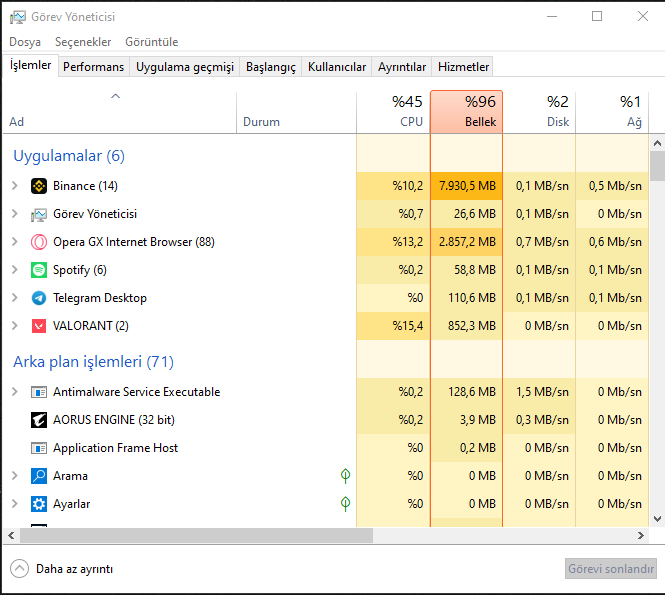 Merhaba, 16 GB RAM kullanıyorum. RAM'leri alalı daha 1 sene bile olmadı. Virüs yok bilgisayarda yeni formatladım ama ısrarla bu yüksek RAM kullanımı probleminden kurtulamıyorum. RAM'lerimde arıza olup olmadıgını nasıl anlayabilirim? Veya farklı bir tavsiyesi olan var mı? Yardıma ihtiyacım var.