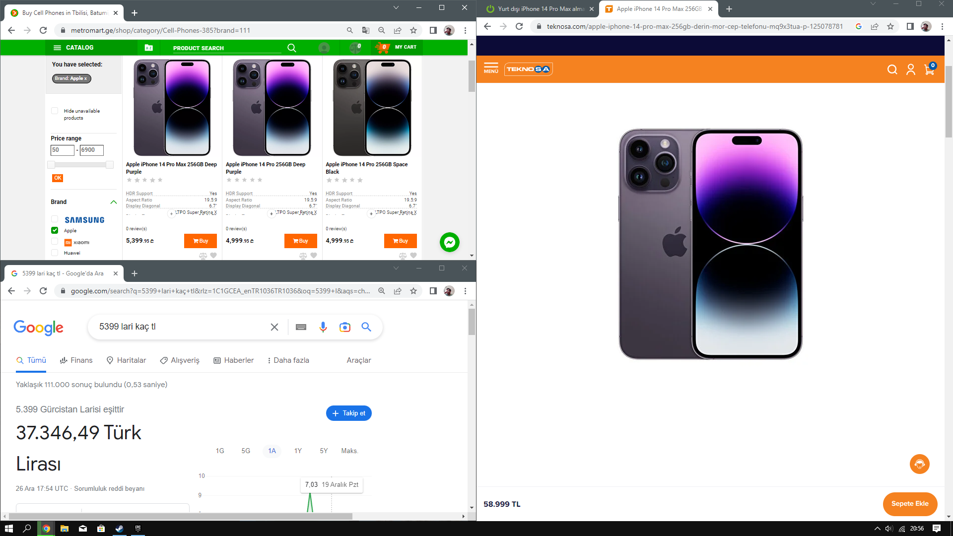 Gürcistan’dan almak şu anda kâr ettirmiyor sanırım. Bugün biriyle görüşeceğim. Pro Max 256GB 30,5k diyor. Bakalım. Kâr koyuyorlar üstüne işte. Kâr koymadan biri getirebilirse sizin yaptığınız gibi çok güzel olurdu ama yok maalesef.