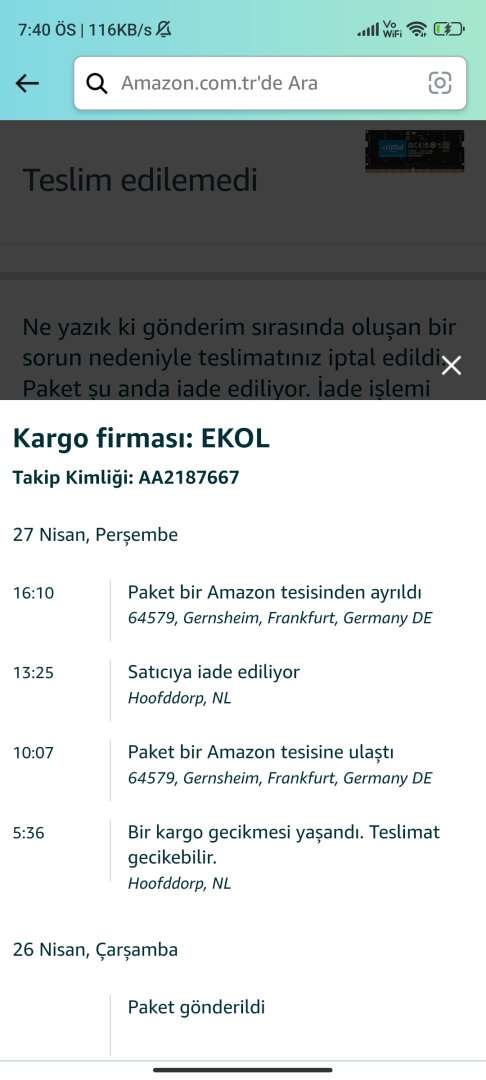 Amazonla cuma konuşmuştum para iadesini çabuk yapar mısınız diye, cuma yatmış yeni farkettim. Yine aldım rami. Güncellerim konuyu yine.