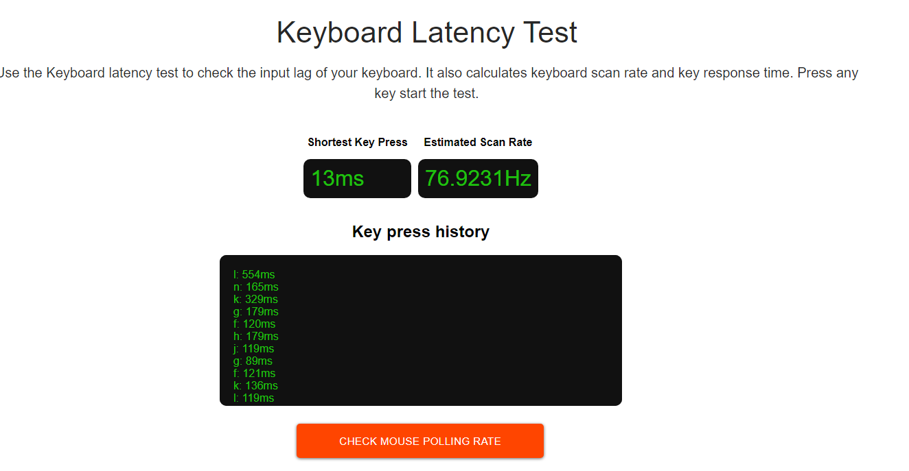 Klavyenin ms testi 16 ms çıkıyor, gayet iyi bir değer.