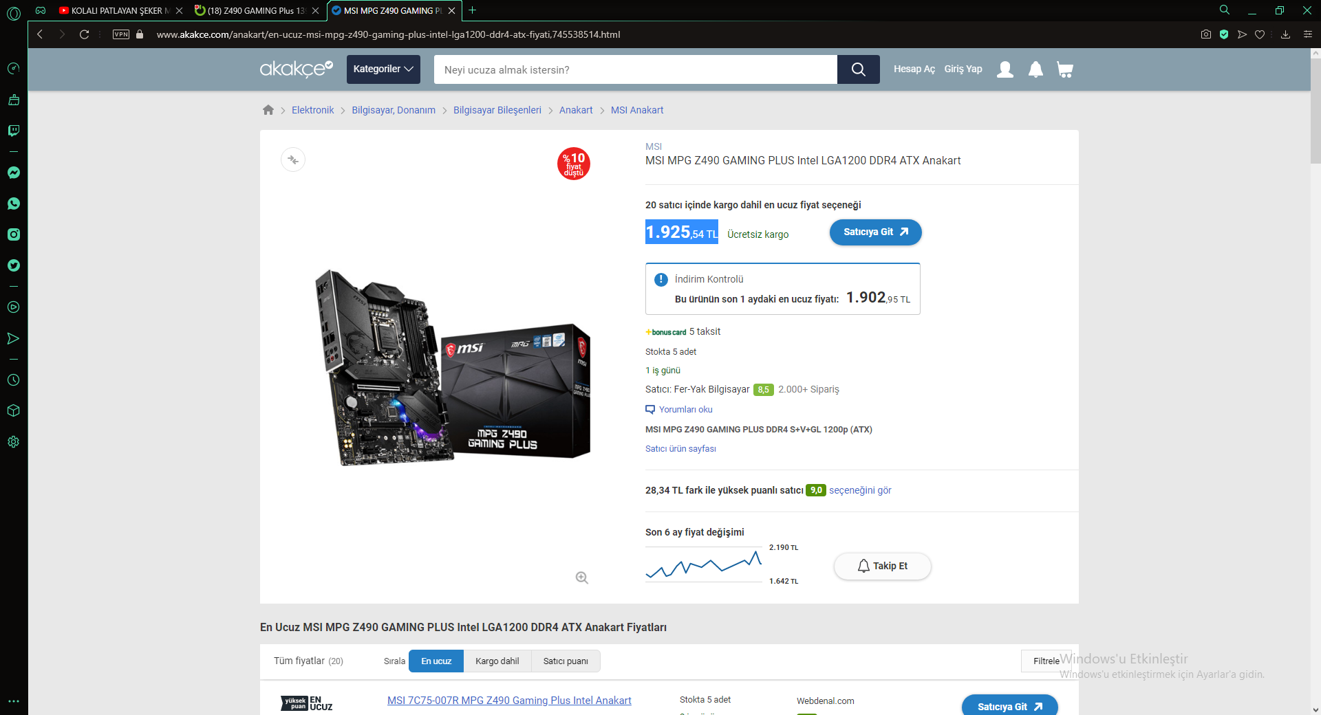 En ucuz Z490 şu an 1550TL ve giriş seviyesi bir Z490 MSI en iyi Z490 ve 1399TL.